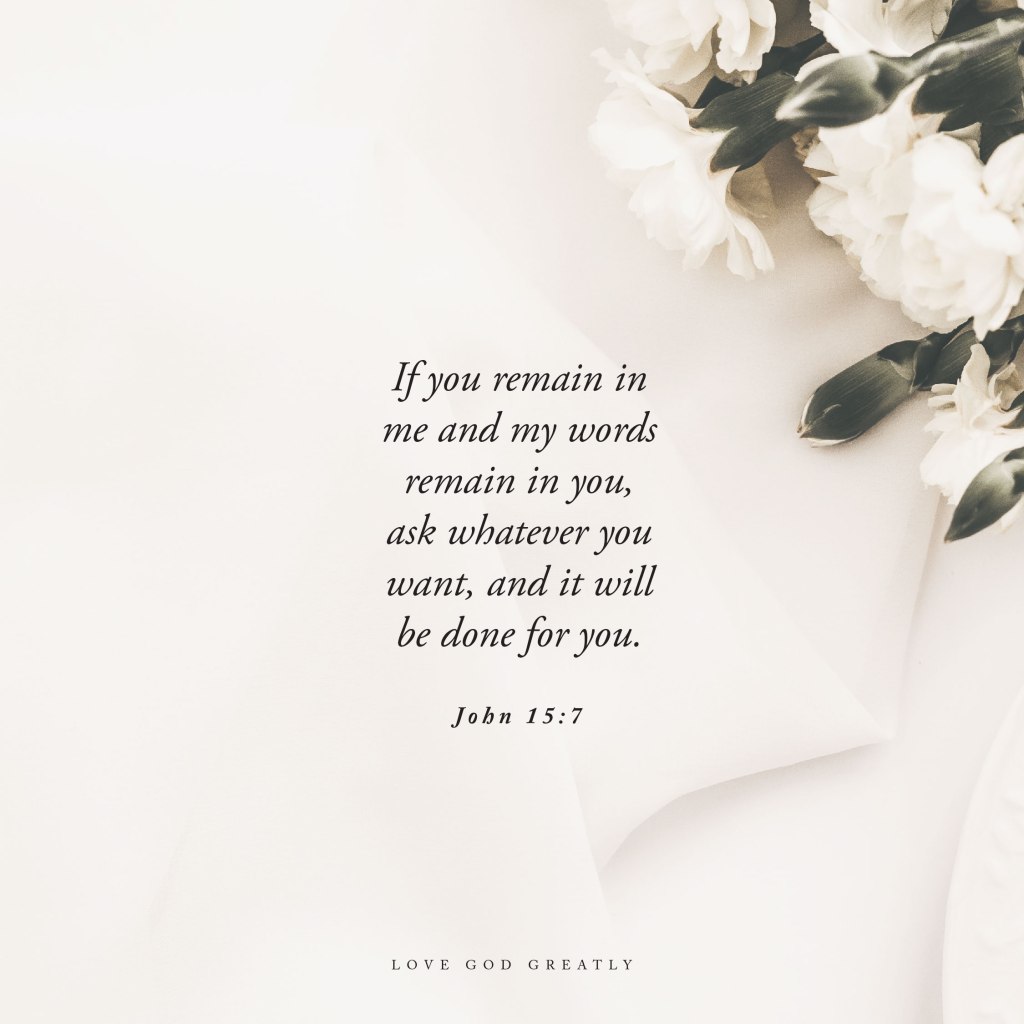 Our focus/memory verse is found in John 15:7 and is a wonderful promise from Christ that reminds us of the power of prayer when we are faithfully abiding in Him and praying according to His will. Unlike most weeks, this verse is not incorporated into the study so we will have to work extra hard to keep it fresh in our minds throughout the week. Don’t be surprised if you see it on the end of the daily posts. You’d be amazed at how seeing and/or reading something daily for five days helps us retain the message or truth posted.