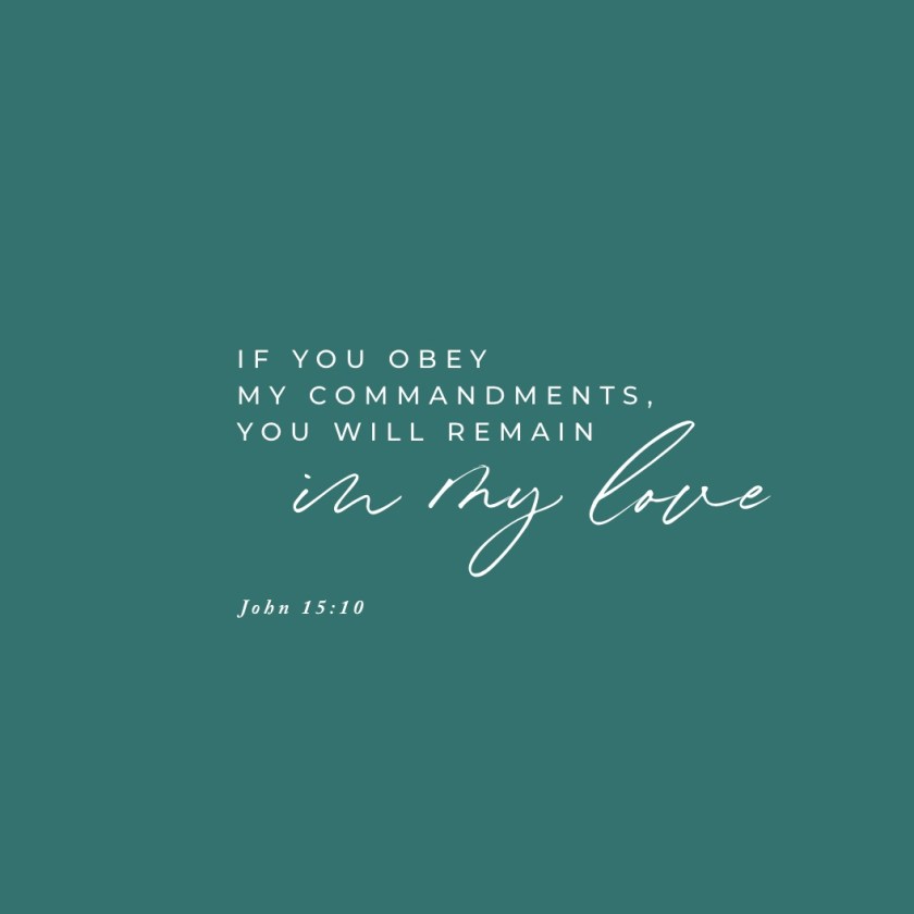 “I have loved you even as the Father has loved me. Remain (abide) in my love. 10 When you obey my commandments, you remain (abide) in my love, just as I obey my Father’s commandments and remain (abide) in his love.