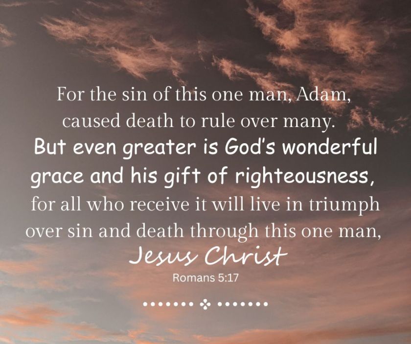 For the sin of this one man, Adam, caused death to rule over many. But even greater is God’s wonderful grace and his gift of righteousness, for all who receive it will live in triumph over sin and death through this one man, Jesus Christ.