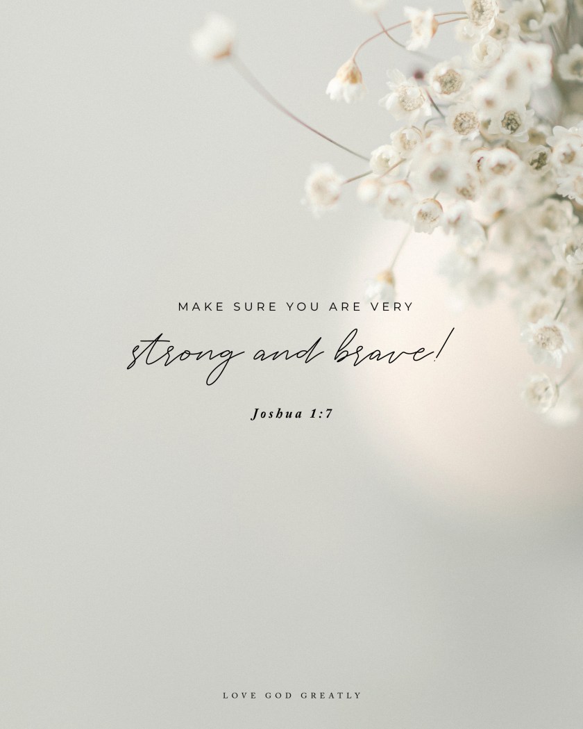 “Be strong and courageous, for you are the one who will lead these people to possess all the land I swore to their ancestors I would give them. 7 Be strong and very courageous. Be careful to obey all the instructions Moses gave you. Do not deviate from them, turning either to the right or to the left. Then you will be successful in everything you do. Study this Book of Instruction continually. Meditate on it day and night so you will be sure to obey everything written in it. Only then will you prosper and succeed in all you do. This is my command—be strong and courageous! Do not be afraid or discouraged. For the Lord your God is with you wherever you go.”