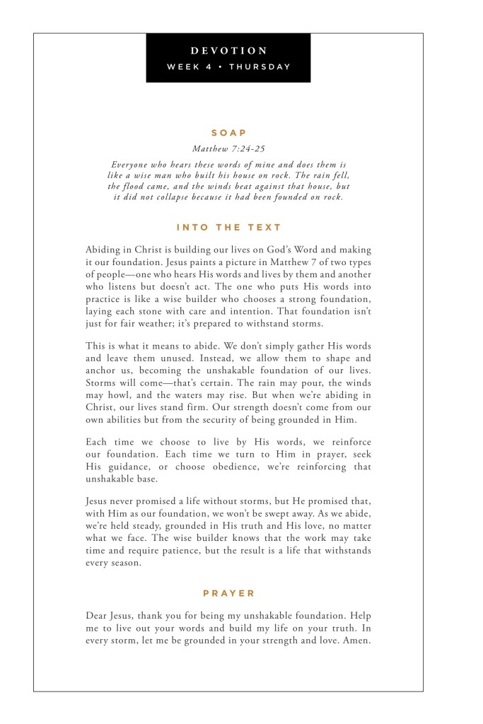 When we feel worn out or discouraged, it’s often a signal to draw closer to Christ. Abiding is more than just working for Him; it’s resting in Him. letting His love and grace renew us.