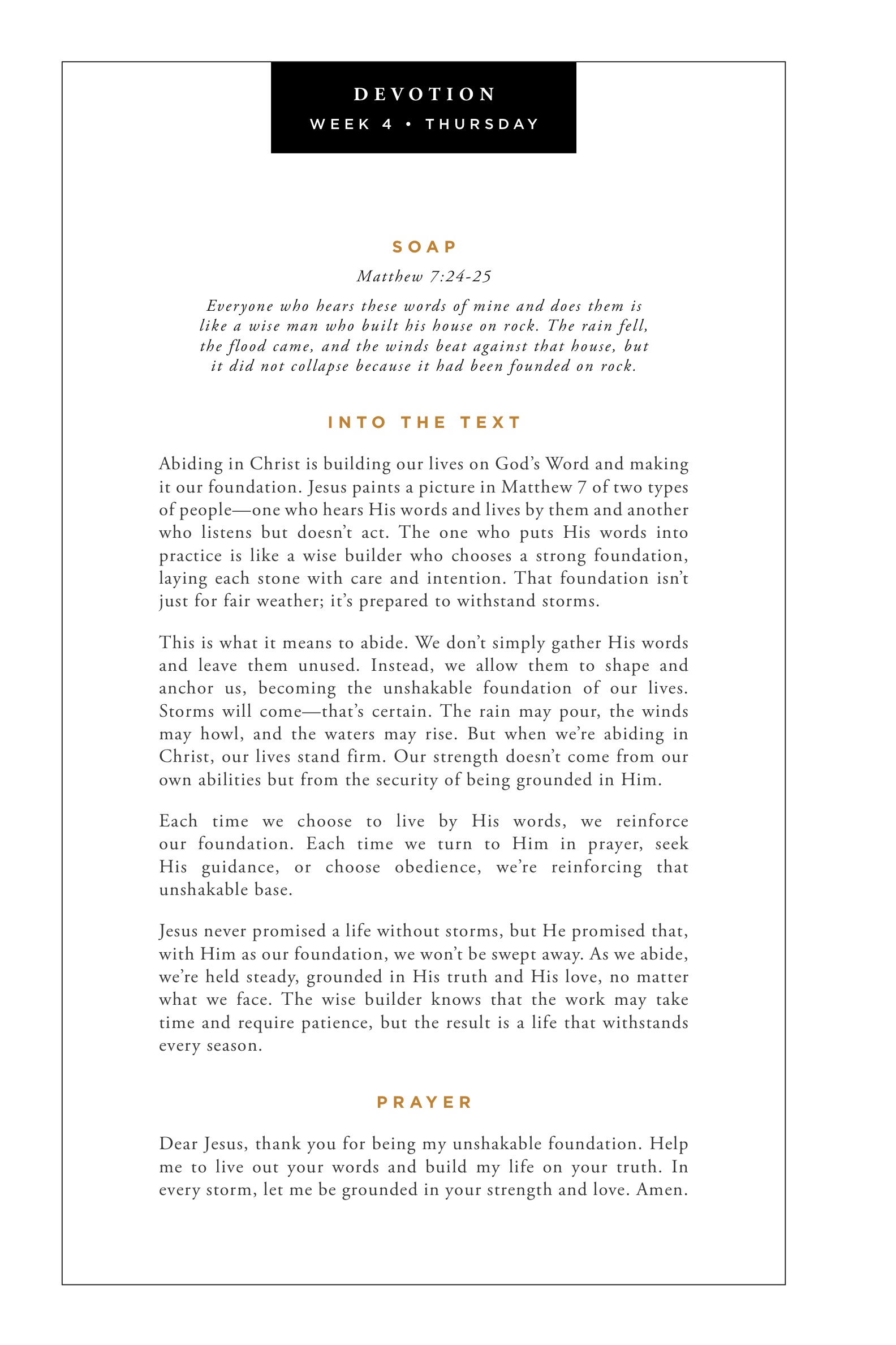 based on the LGG study, Abiding in Jesus, w6d4
