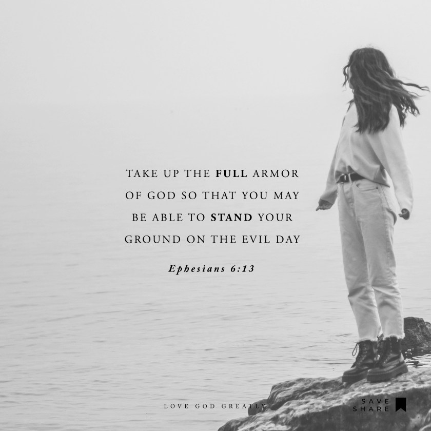 For this reason, take up the full armor of God so that you may be able to stand your ground on the evil day, and having done everything, to stand. 14 Stand firm therefore, by fastening the belt of truth around your waist, by putting on the breastplate of righteousness,