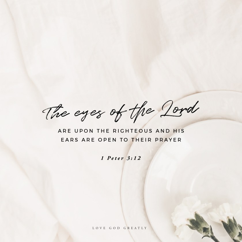 Father, our sinful earthly nature, which still lurks within us, is quick to return evil for evil and insult for insult. It bids us away from the good we want to do to do the evil we are meant to turn away from. It entices us to speak lies and hurts rather than blessings and truth, and to fight back rather than seek peace. Thank You for this reminder from Peter, that Your face is set against those who do evil but that Your favor is on those who live out Your righteous calling, and Your ears are open to our prayers – for this, we are grateful and seek to live accordingly. Help us to be devoted to what is good and right in Your sight, and if we suffer for doing what is right help us to remember You have promised blessing. In this, let us be confident so that we are neither terrified nor shaken. – In the name of Jesus I pray and trust – amen and amen!
