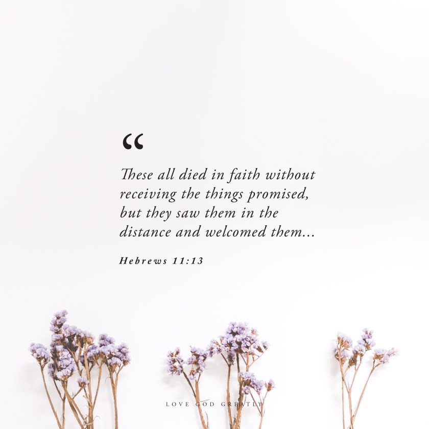 13 These all died in faith without receiving the things promised, but they saw them in the distance and welcomed them and acknowledged that they were strangers and foreigners on the earth. ... 21 By faith Jacob, as he was dying, blessed each of the sons of Joseph and worshiped as he leaned on his staff.  NLT