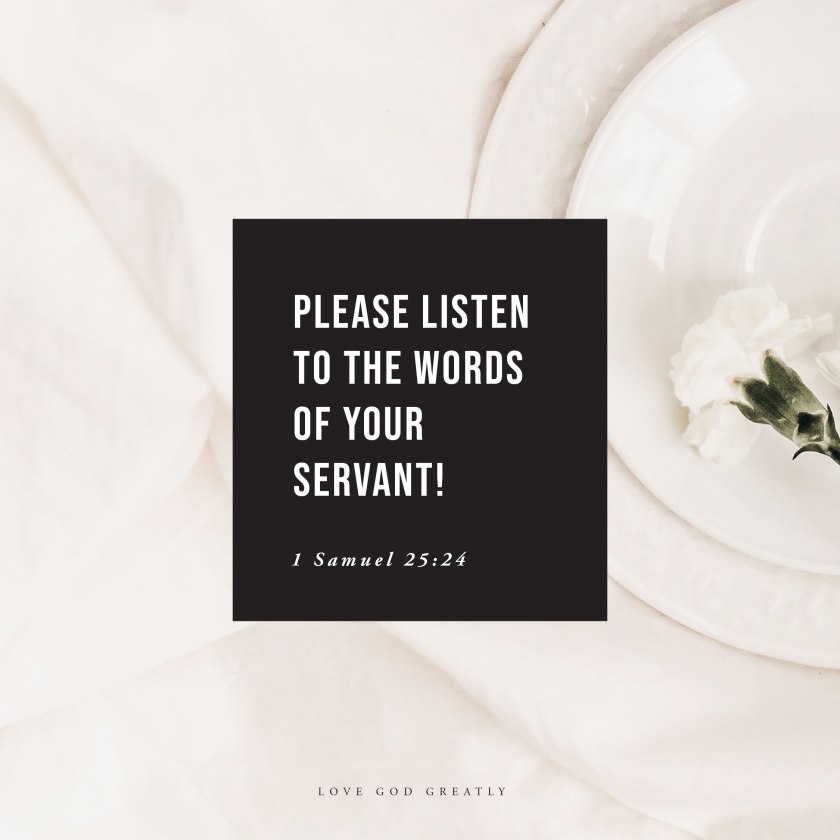Father, the story of Abigail is beautifully inspired though she was the wife a a wicked man she kept You in mind. You gave her wisdom and strength where it would have been easy to run and hide or to berate her husband. You showed her your favor and used her humility and courage in a mighty way. May I live surrendered. – In the power of Your Spririt –