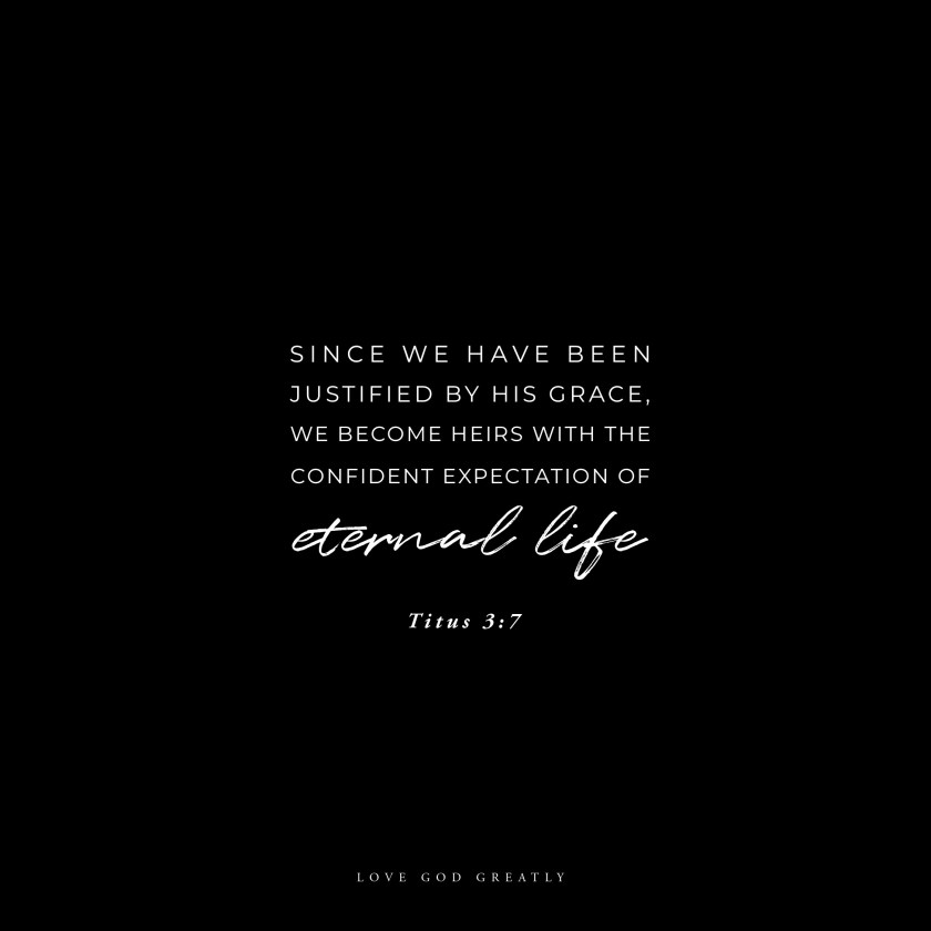 And so, since we have been justified by his grace, we become heirs with the confident expectation of eternal life.”