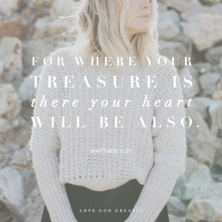 Truth: Don’t store up treasures here on earth, where moths eat them and rust destroys them, and where thieves break in and steal. Store your treasures in heaven, where moths and rust cannot destroy, and thieves do not break in and steal. Wherever your treasure is, there the desires of your heart will also be.
