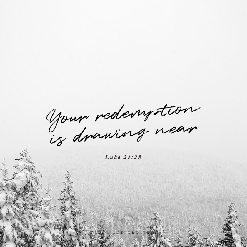 • Raise your heads – despite the events or the condition of the world around us, we know He is coming again and can live with that certainty rather than the hopelessness and panic of the world around us (be ready and help others be ready by making Him known)