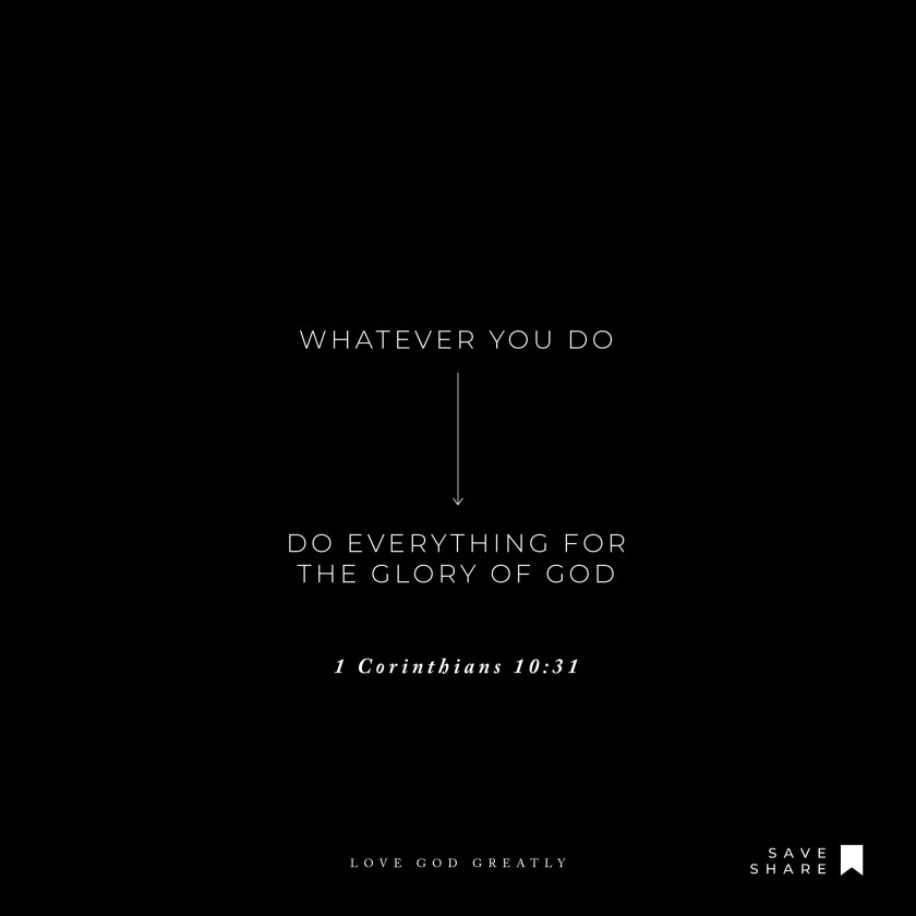 So, whether you eat or drink, or whatever you do, do everything for the glory of God.
