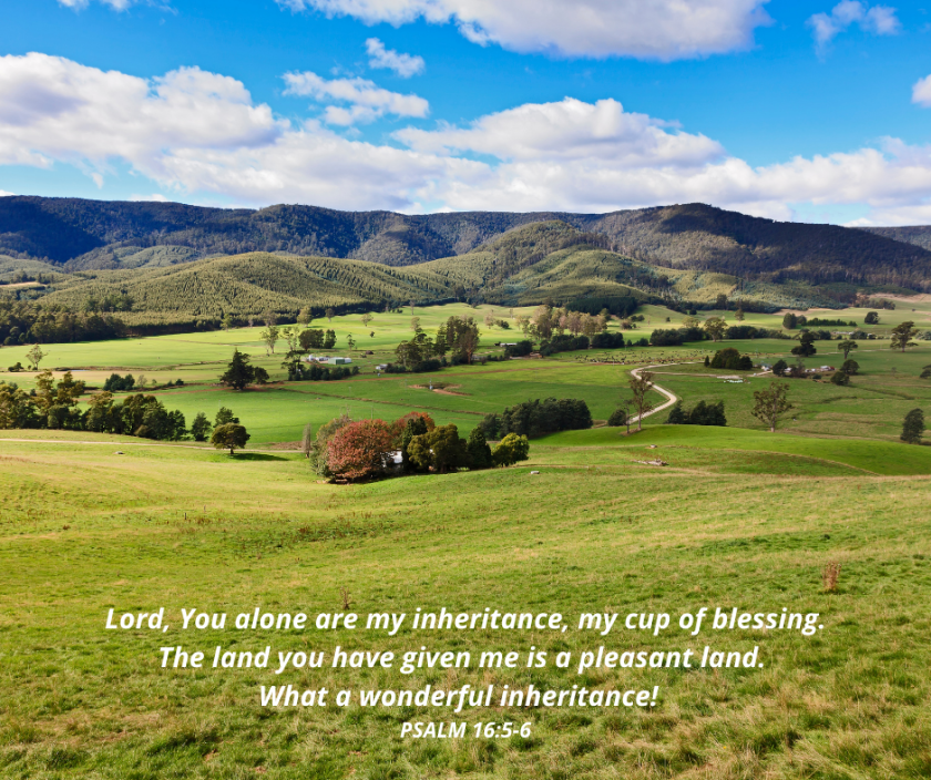 5 Lord, you alone are my inheritance, my cup of blessing. You guard all that is mine. 6 The land you have given me is a pleasant land. What a wonderful inheritance! Psalm 16:5-6