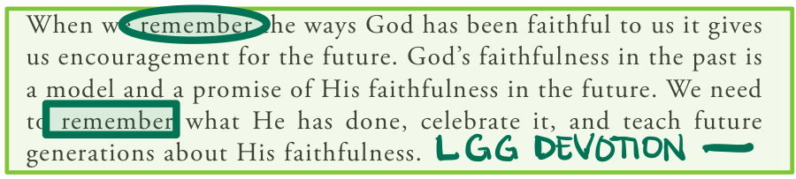 So maybe you want to stack stones, put marbles in a jar, or write reminders for yourself. Whatever you do, never forget how faithful God is, has been, and will be to you in the future. And every opportunity you have, share why you set those reminders up with those around you too! May none of us neglect to memorialize His faithfulness.