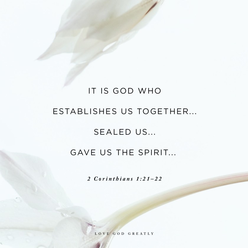 It is God who enables us, along with you, to stand firm for Christ. He has commissioned us, 22 and he has identified us as his own by placing the Holy Spirit in our hearts as the first installment that guarantees everything he has promised us.
