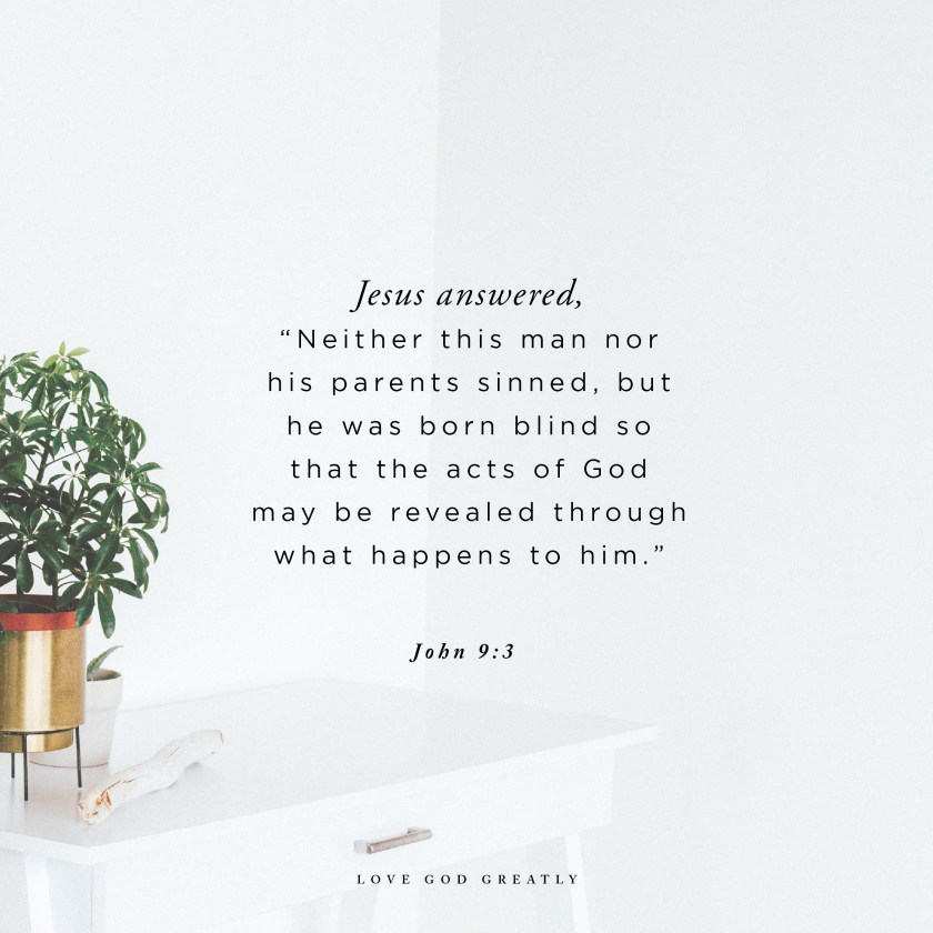 “It was not because of his sins or his parents’ sins,” Jesus answered. “This happened so the power of God could be seen in him.