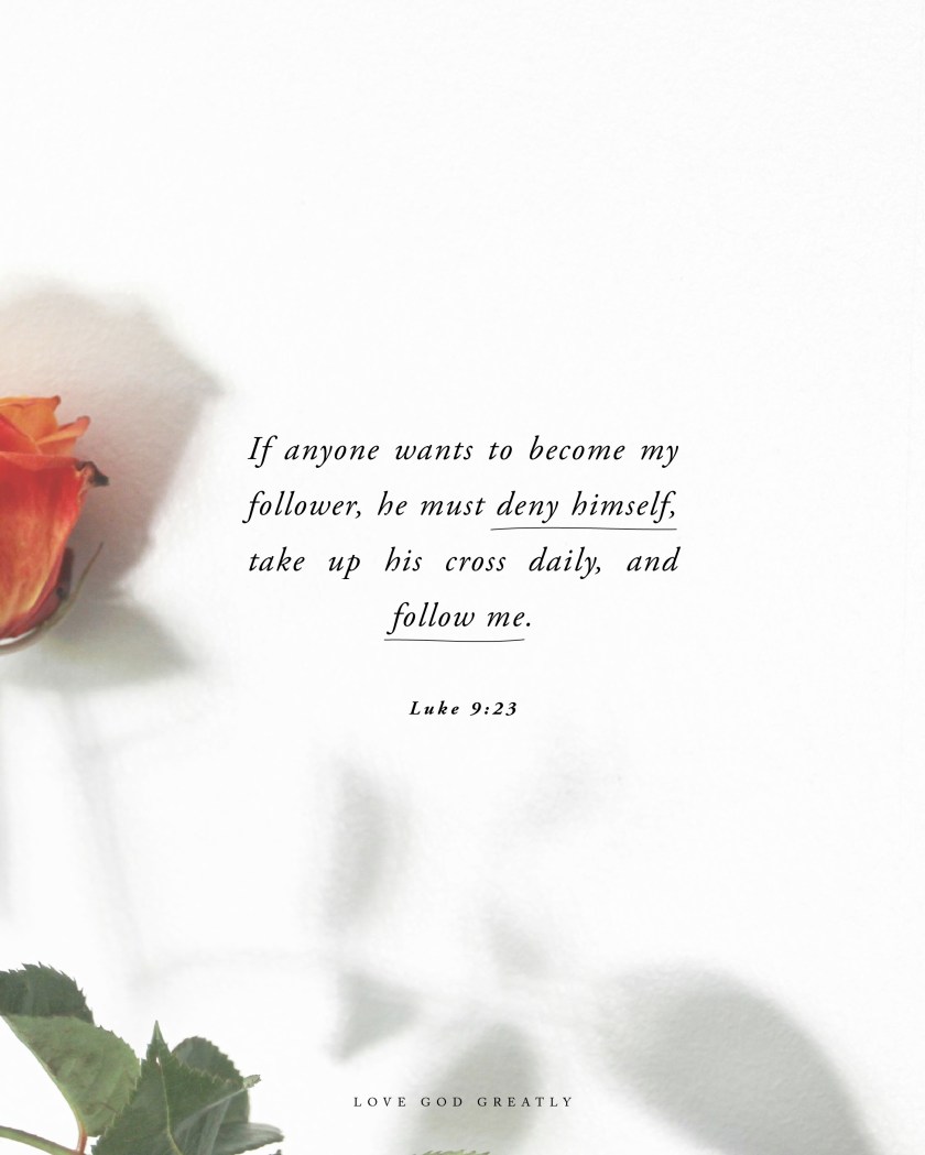 Then he said to them all, “If anyone wants to become my follower, he must deny himself, take up his cross daily, and follow me. 24 For whoever wants to save his life will lose it, but whoever loses his life because of me will save it.