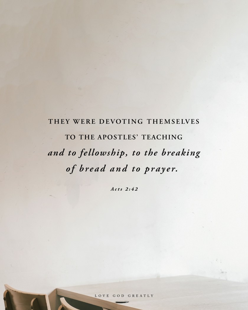 They were devoting themselves to the apostles’ teaching and to fellowship, to the breaking of bread and to prayer.