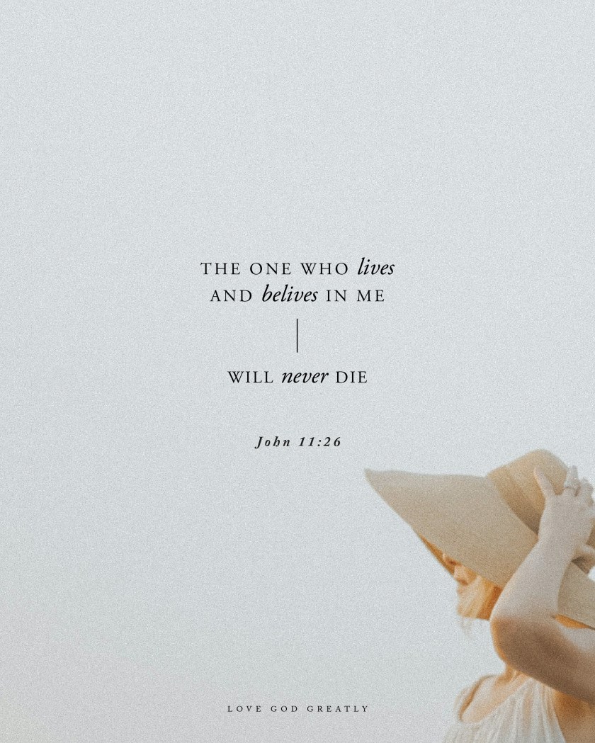 Jesus said to her, “I am the resurrection and the life. The one who believes in me will live even if he dies,and the one who lives and believes in me will never die. Do you believe this?”