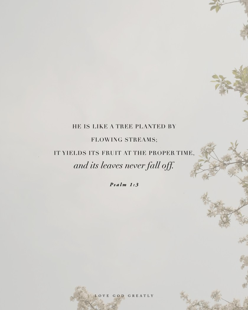 When our lives are rooted in God’s Word, our joy no longer hinges on our circumstances but rather on obeying His commands. From the world’s view, our lives might look like a mess, yet we can remain calm, knowing that our Heavenly Father is working everything according to His perfect plan. It is in those hurricanes of heartbreak that should have uprooted us that we are able to stand grounded and strong. Our leaves and fruit will never dry up because He is the never-ending, always and forever Living Water.