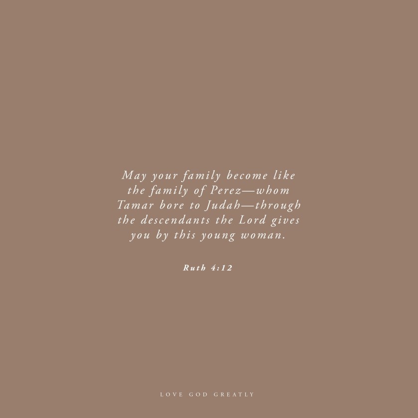 12 And may the Lord give you descendants by this young woman who will be like those of our ancestor Perez, the son of Tamar and Judah.” Ruth 4:12  NLT